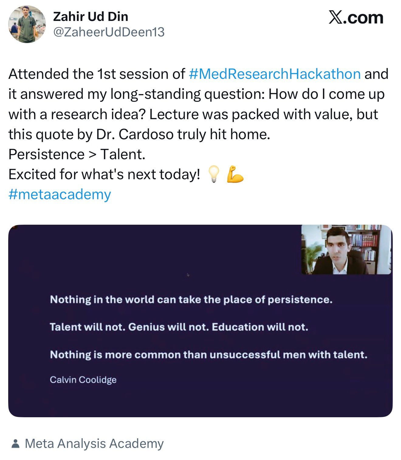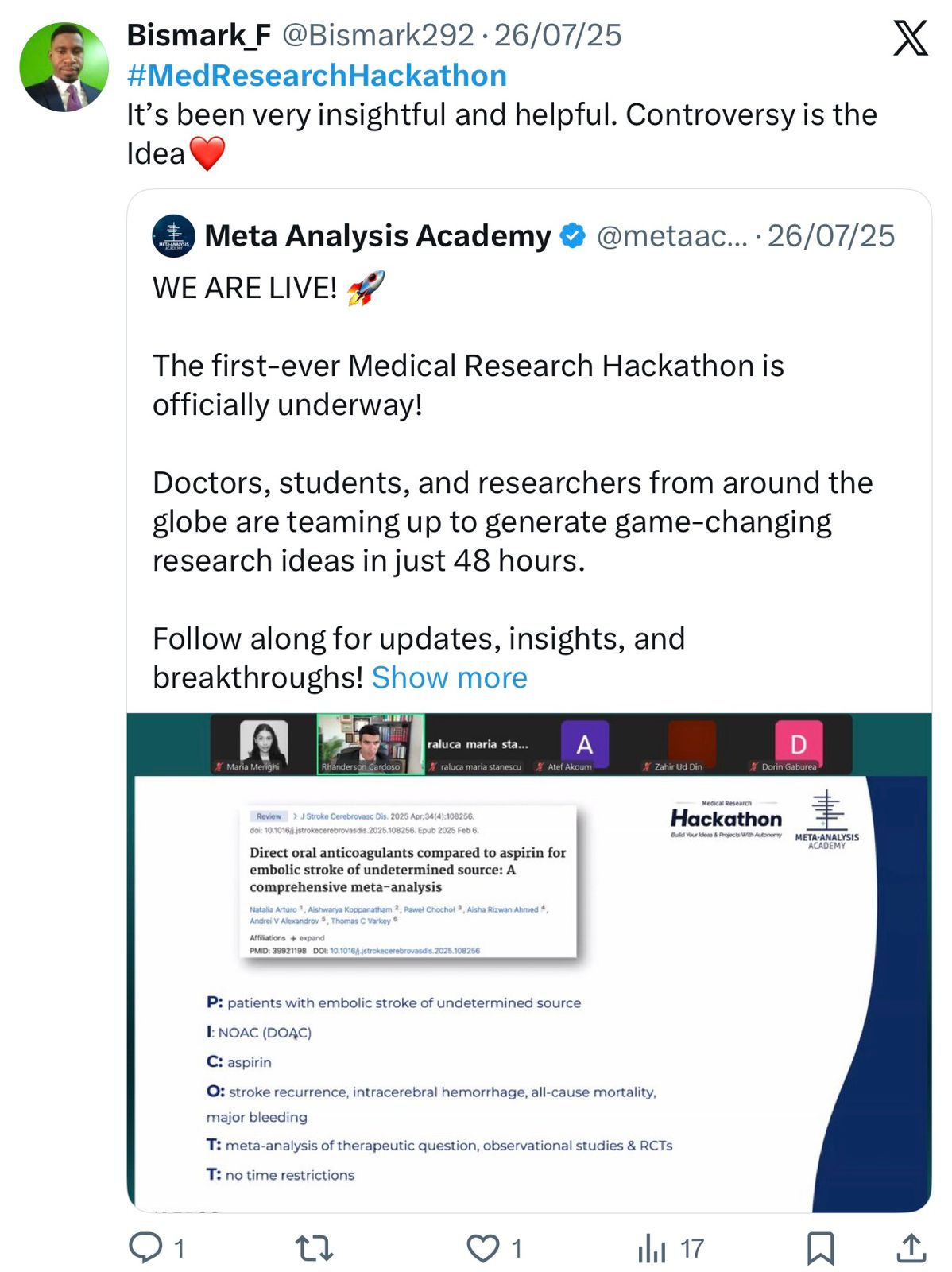 he founded the Meta-Analysis Academy, a thriving community of over 5,000 medical professionals worldwide. Supported by a distinguished team of mentors, directors, and educators, the Academy has empowered thousands to apply this systematic framework, resulting in: