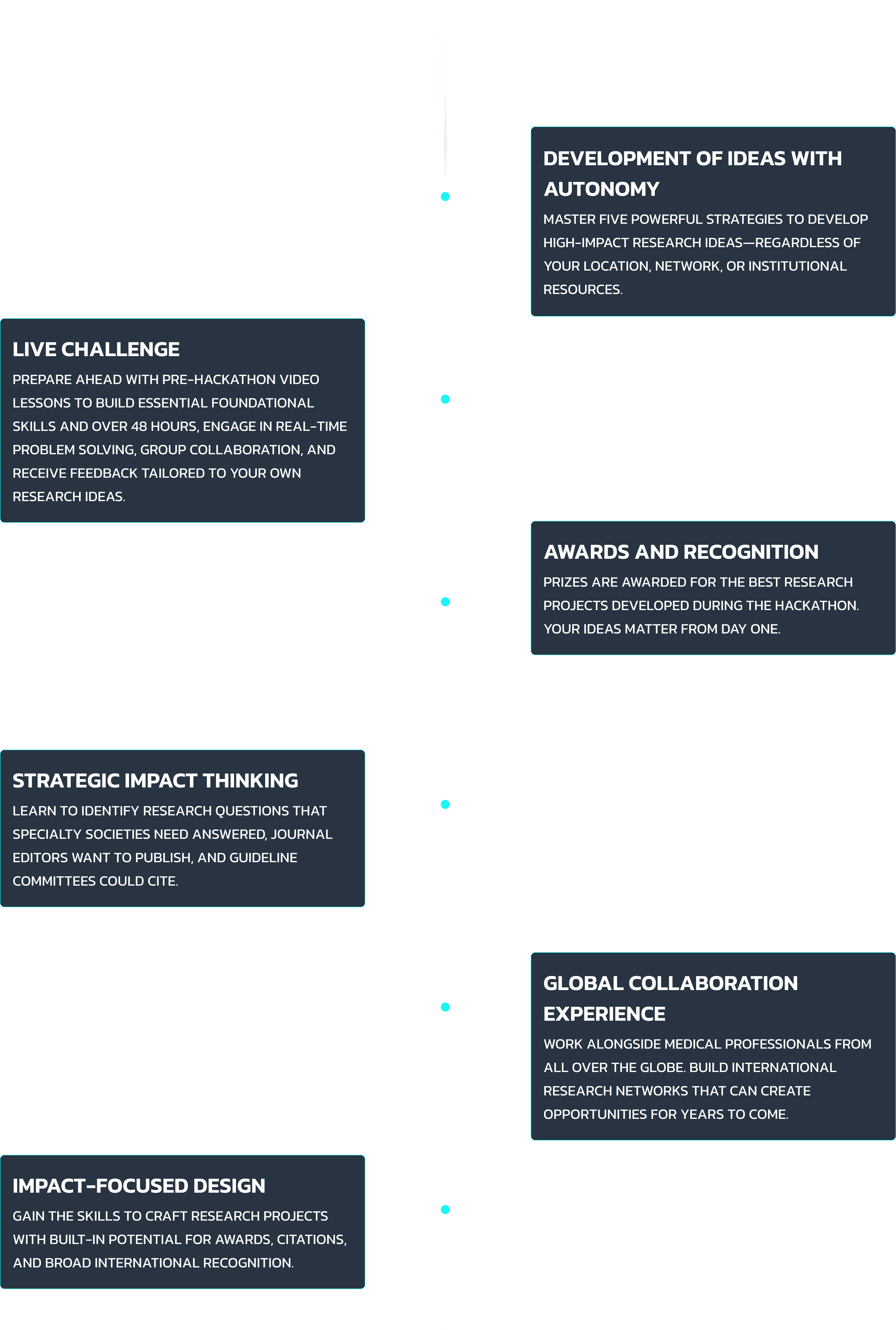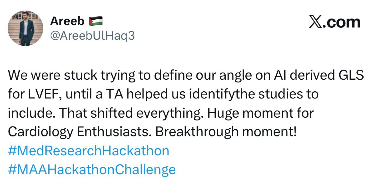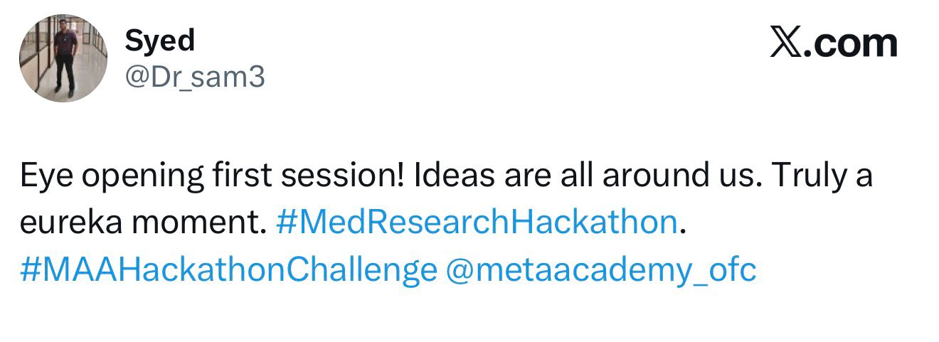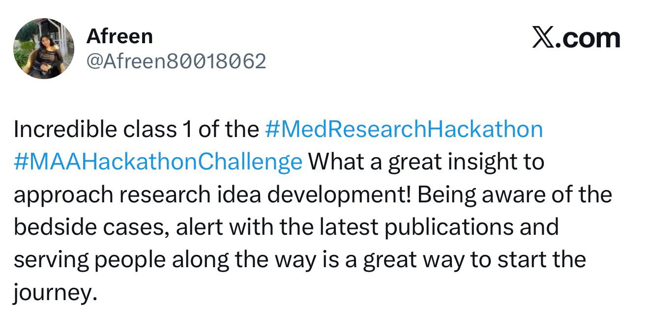 THE HACKATHON IS DESIGN to break the cycle of dependency in medical research by focusing on generating powerful, actionable research ideas.